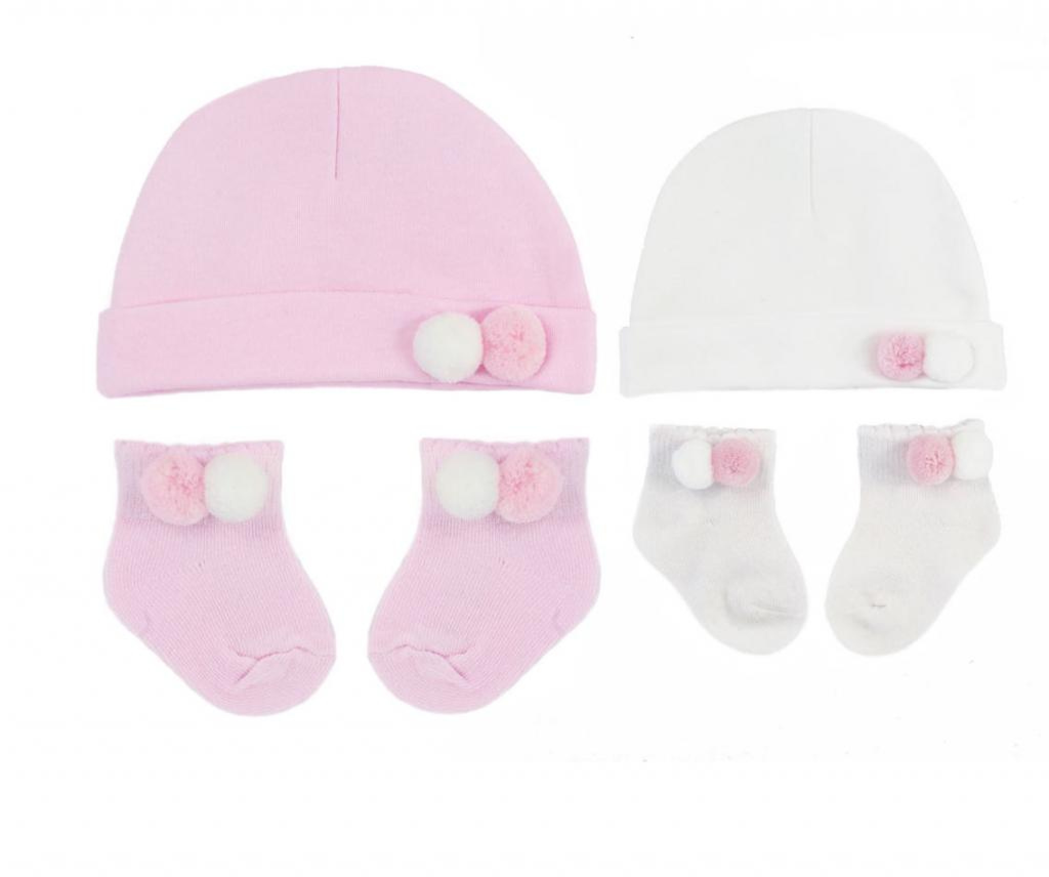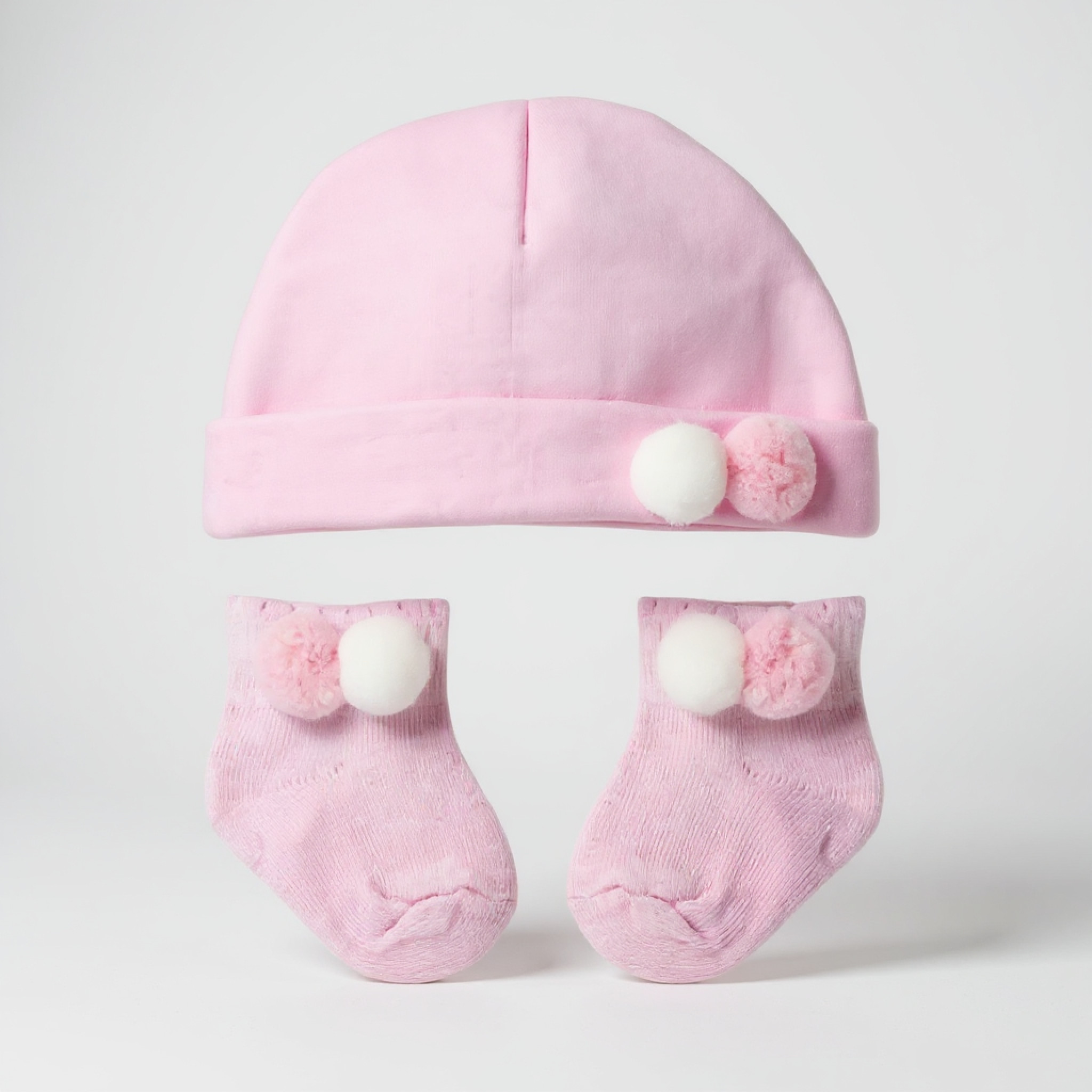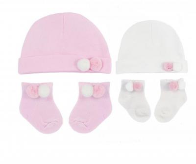 | Fibre | Interlock knit Hat: 100% Cotton; Socks: 75% Cotton, 23% Polyester, 2% Elastane;Pom Pom: 100% Polyester Knit |