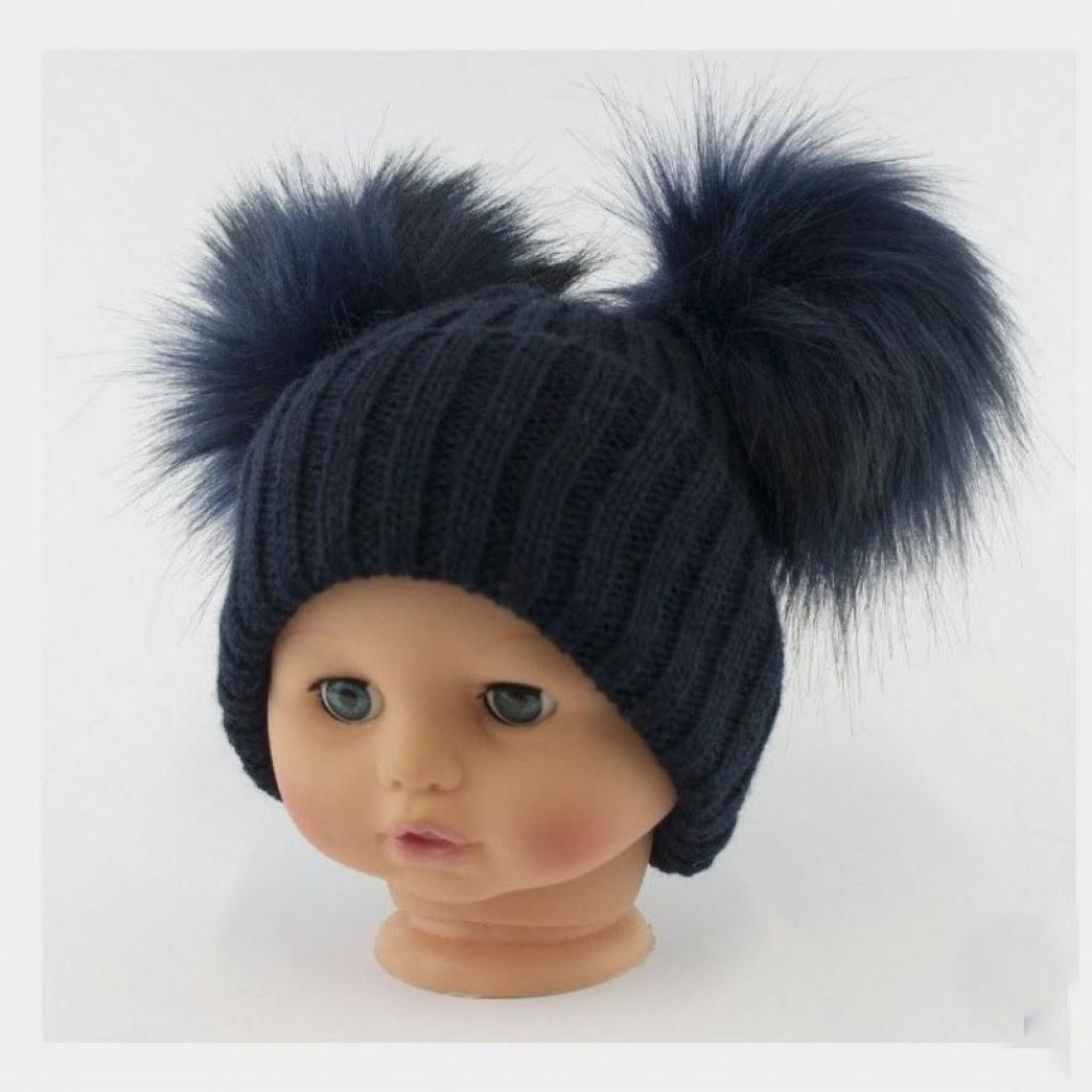 Navy Double Pom Pom Hat