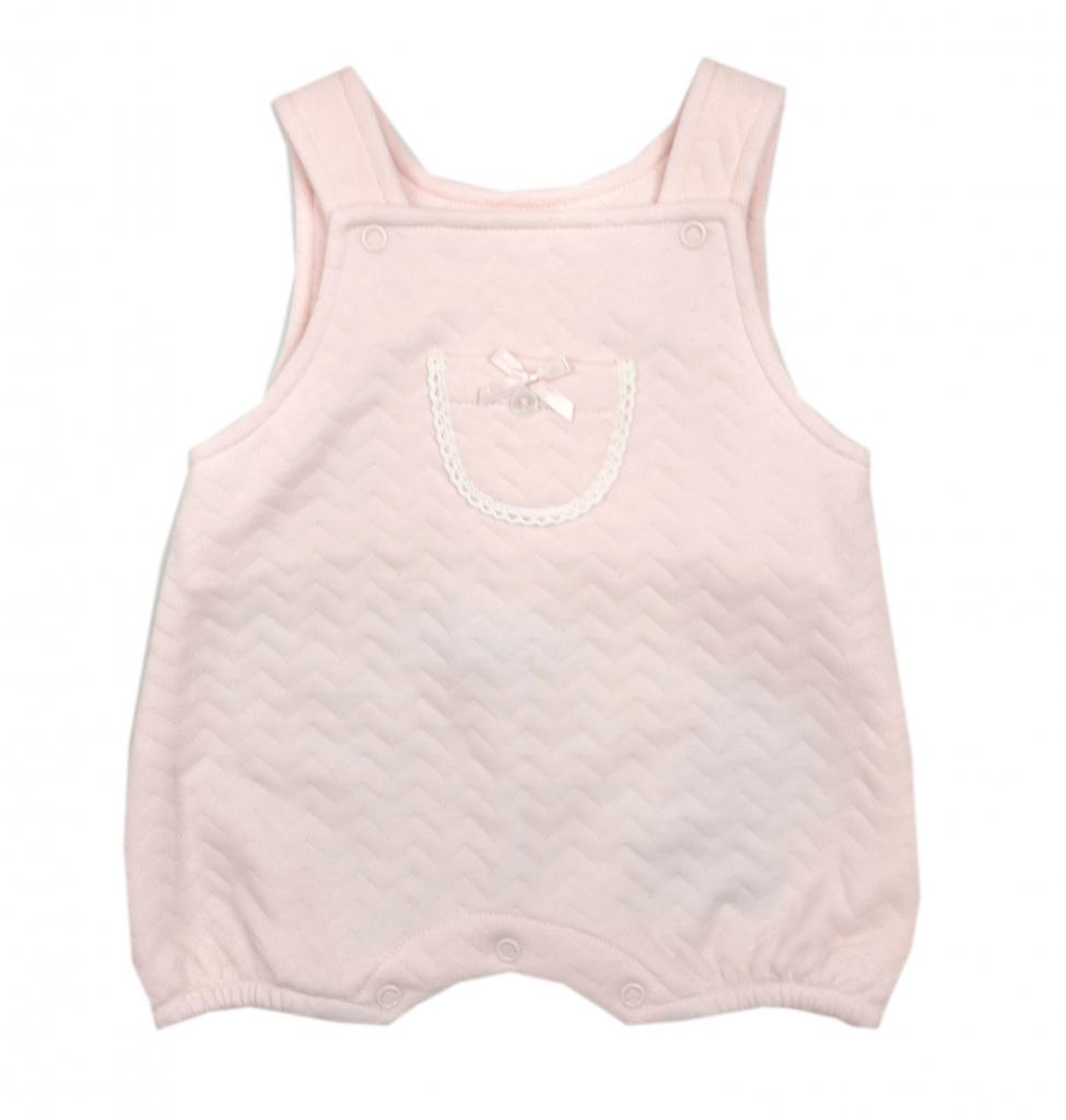 Zigzag sandwich dungaree with lace and bow trimmed pocket