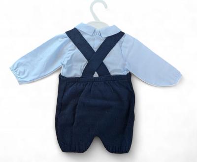 Trousers - 100% Acrylic Knit. Top - 100% Cotton Woven.