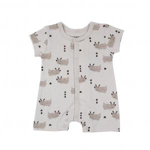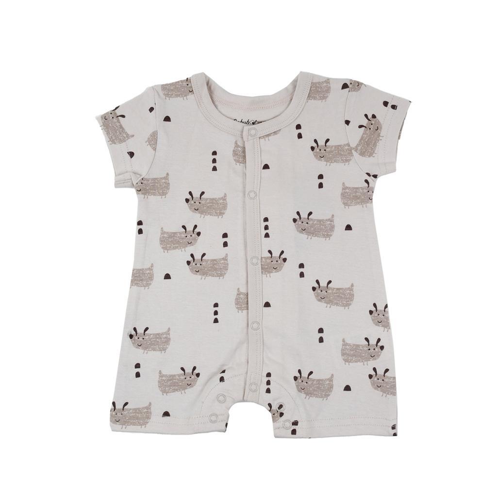100% natural cotton organic romper with fastneing to the front and legs. "Puppy" design.