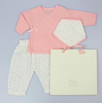 Wrap around crinkle muslin top fastened with poppers. Crossover style.