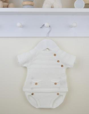 Knitted top with matching pants. The top has back button fastening and pockets to the front.