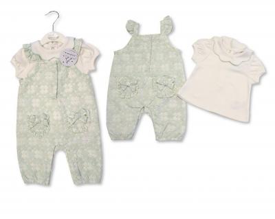 Jacquard romper with back fastening and poppers at the legs. Frilled shoulder and pocket detail, finished with bows.