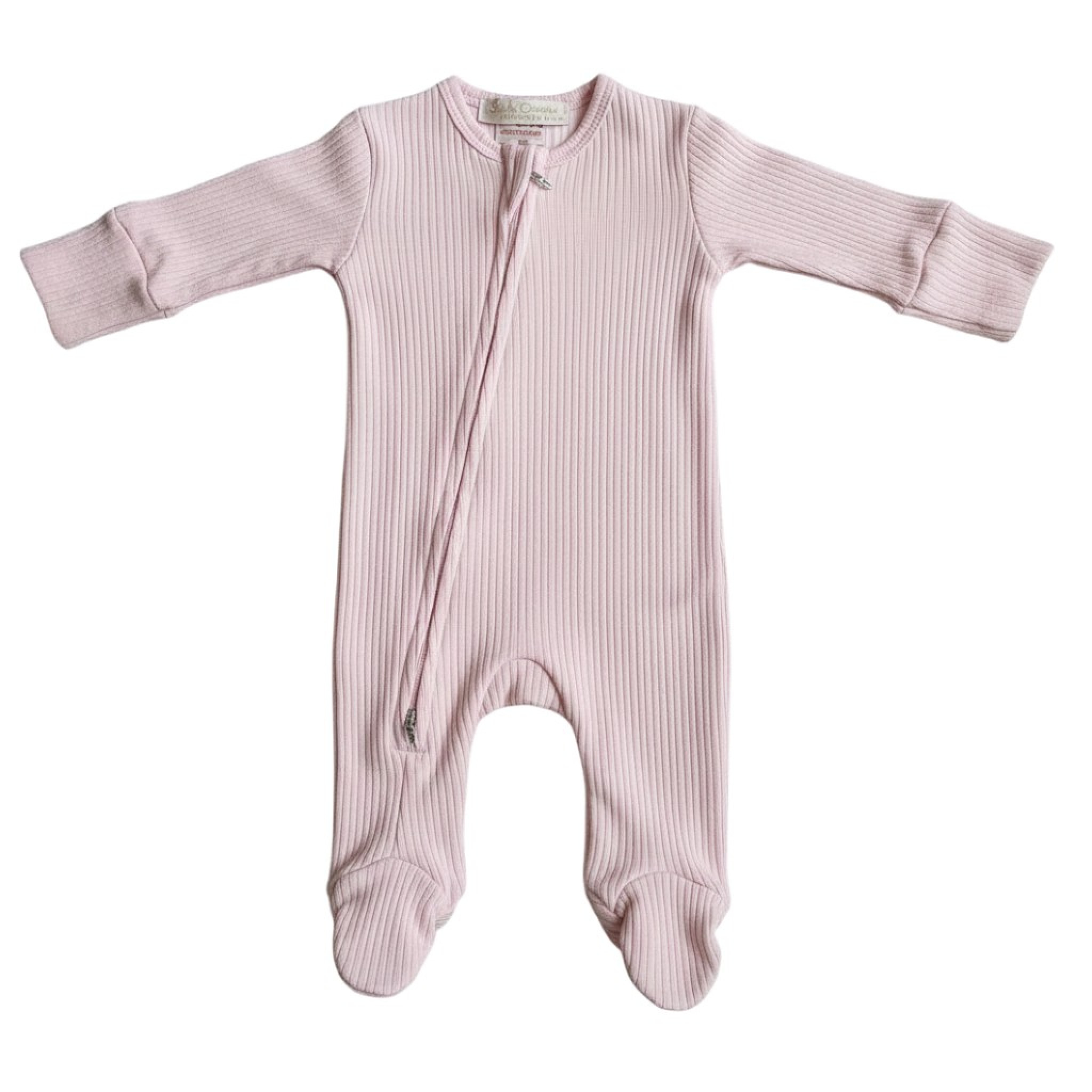 Ribbed all in one with zip fastening to the front. "Hello" motif rubberised print on the back.