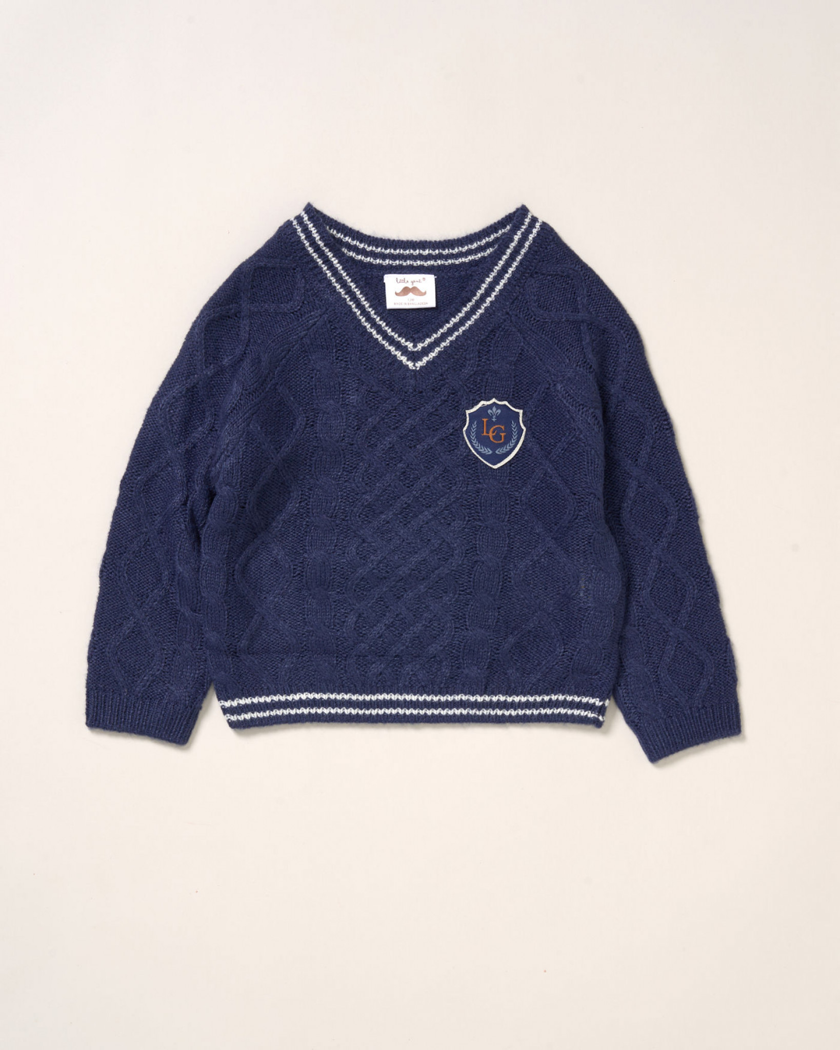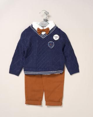 | Fibre | Acrylic knit jumper, cotton weave shirt, 2% elastane cotton rich woven trouser |