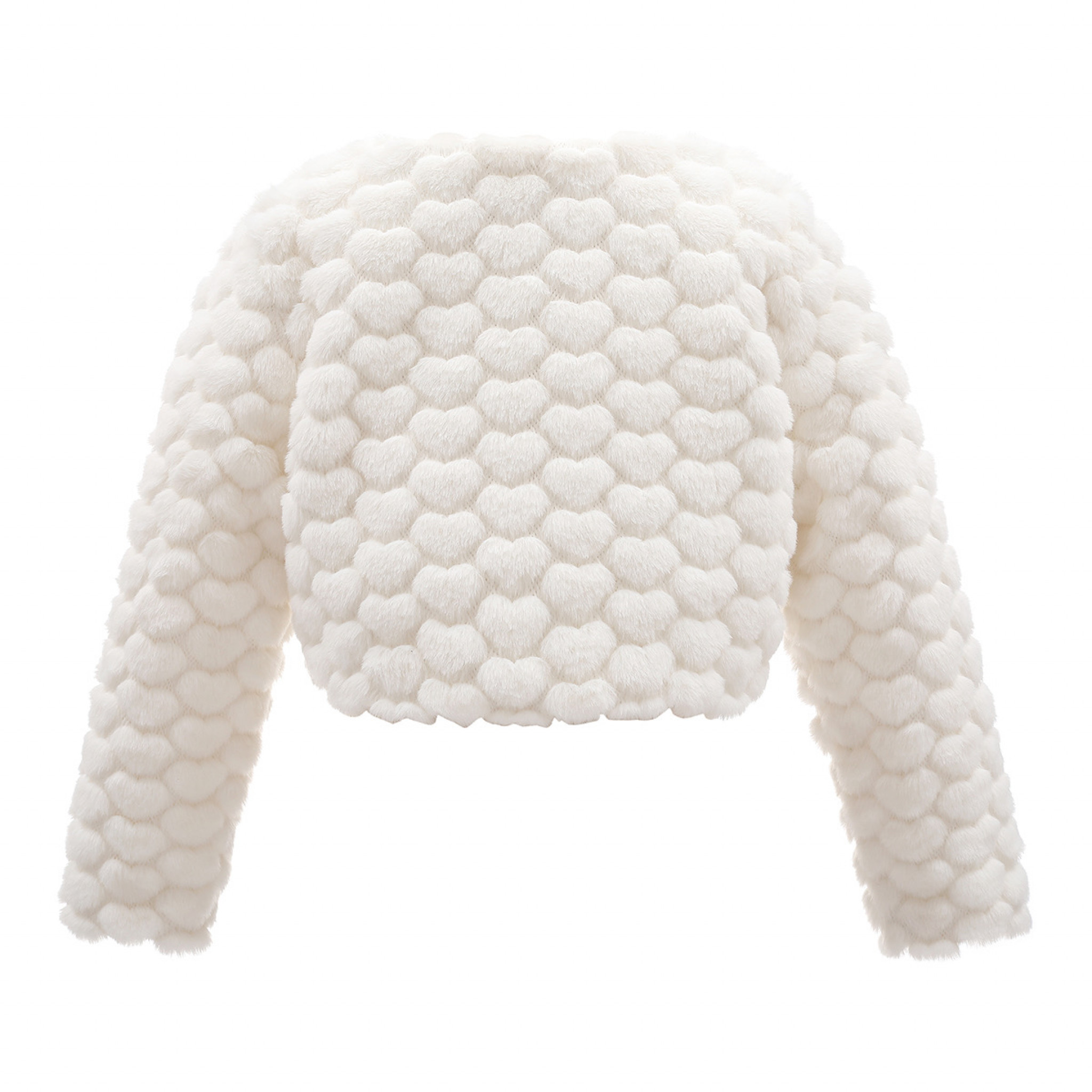 Furry heart textured bolero with diamante clasp.