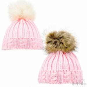 Pink Cable Fluffy Pom Pom hats