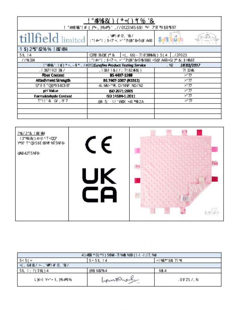| Fibre | 100% Polyester Knitted Comforter Toy |