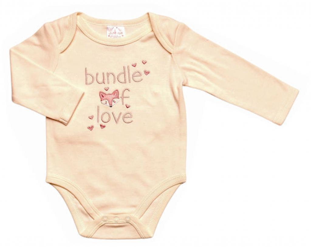 Bodysuit with envelope wnck and poppers to the legs. "Bundle of Love" design.