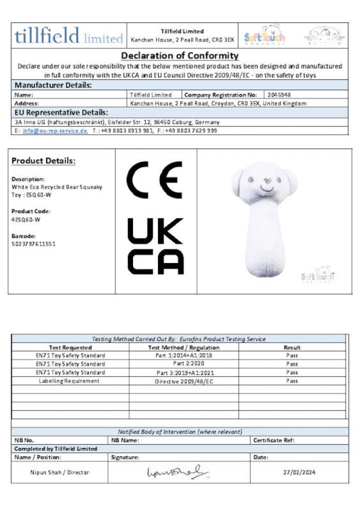 | Fibre | 100% Polyester Knitted Toy |