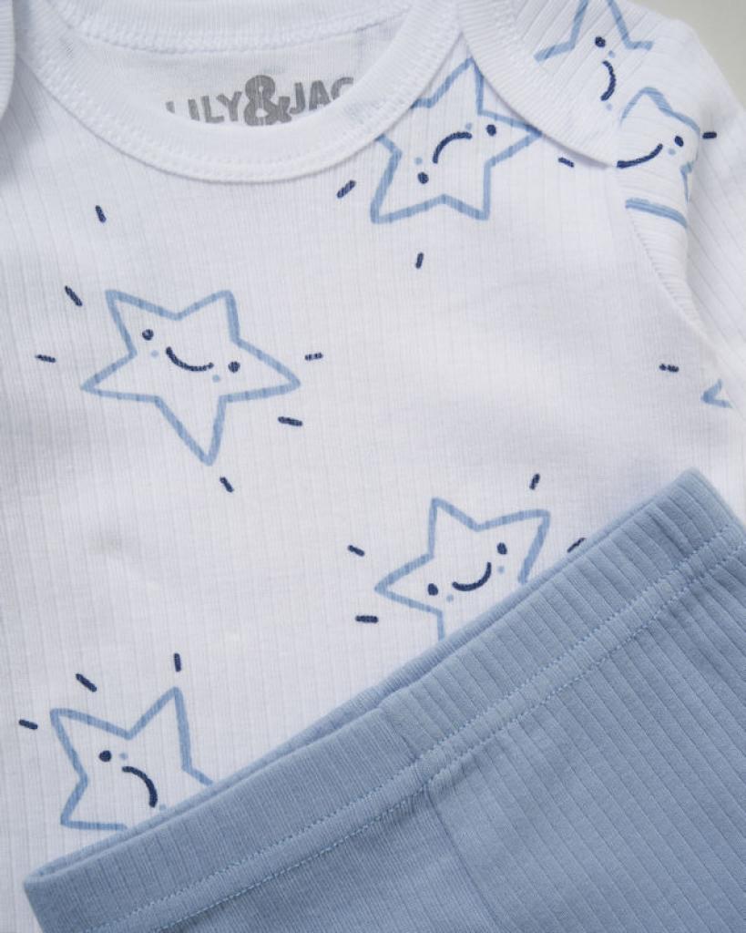 | Fibre | Bodysuit, Trousers, Bib, Hat - 100% Cotton Knit. Socks - 75% Cotton, 22% Polyester, 3% Elastane Knit |
